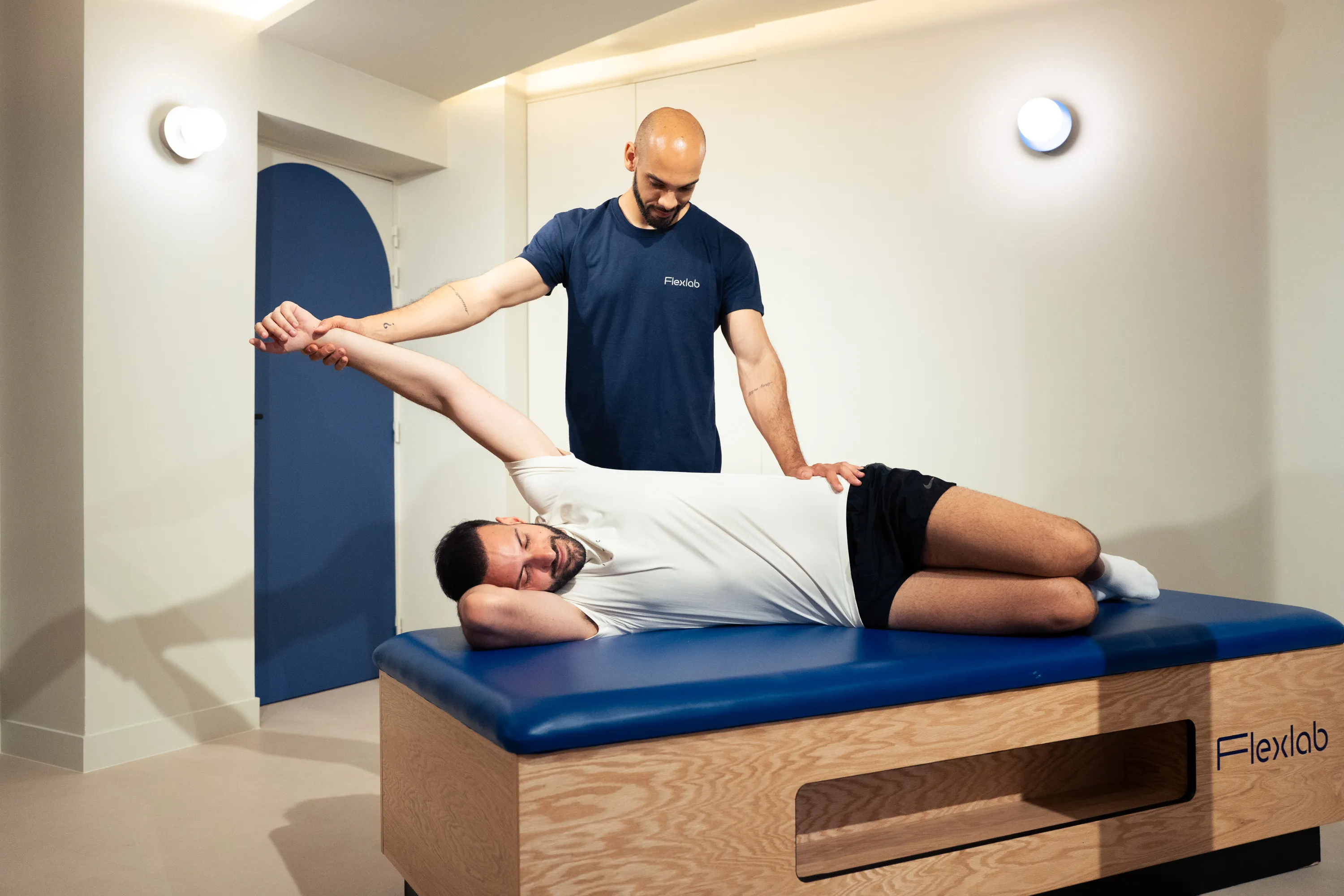 Formés au protocole Flexlab, nos flexologues combinent technique précise et sens du service. Ils analysent votre posture, ajustent chaque mouvement et veillent à votre confort du premier au dernier étirement.
