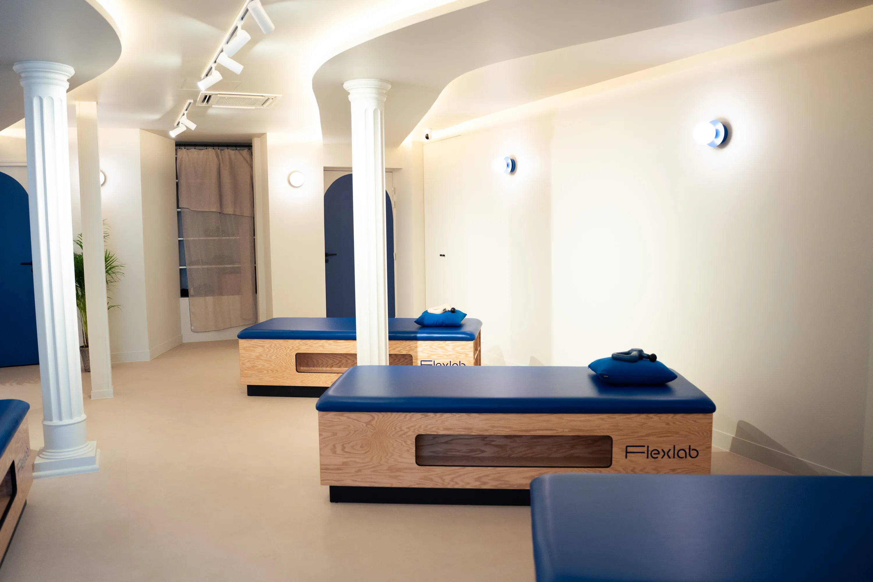 80 m² pensés comme un laboratoire de récupération : 5 tables dédiées au stretching assisté, une équipe de Flexologues certifiés, trois protocoles Flexlab exclusifs.